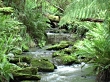 Footage of a stream surrounded by rainforest including sound