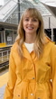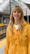 A woman walking with an umbrella at a light rail station in Bellevue Washington. This is a newly opened station which is part of the 2 line. The 2 line will eventually run between Redmond and Seattle.