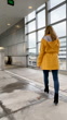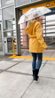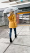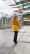 A woman walking with an umbrella at a light rail station in Bellevue Washington. This is a newly opened station which is part of the 2 line. The 2 line will eventually run between Redmond and Seattle.