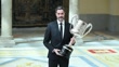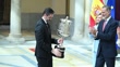 MADRID, SPAIN - APRIL 4: Raul Entrerrios (L) receives the 'Francisco Fernandez Ochoa' sport award from King Felipe VI of Spain and Queen Letizia of Spain during the 2022 National Sports Awards at the El Pardo Palace on April 4, 2024 in Madrid, Spain. (Footage by Borja Benito Hojas/Getty Images)