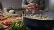 Unrecognizable man putting chopped cauliflower in the baking tray
