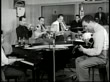 MOT 1947: EDDIE CONDON: CU Record label 'Atlantic Eddie Condon' spinning. INT MS Musician Eddie Condon (1905-1973) (R) playing guitar w/ band in recording studio. MS Condon playing acoustic guitar. (Members Bushkin Hackett Hucko Bradley Rich) (SOT)