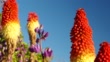 Red Hot Pokers in a garden at a croft house at Upper Urafirth, Mainland Shetland, Scotland, UK.
