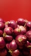 A bundle of red onions on wooden board with rust colored background. Garlic and red onions (purple or bluehi onions), often associated with good fortune, health, and protection against evil spirits, are not only believed to ward off negativity and bring positive energy into homes during the New Year, but they also serve as staples in Vietnamese cuisine prepared for Tết, commonly featured in traditional dishes like stews, Chả Giò spring rolls, and various types of meat, all of which may be flavored with garlic and red onions.