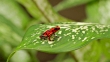 A Red Frog sitting on a leaf as it gently moves in the light breeze.