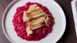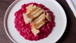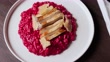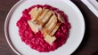 Red beat risotto with chicken gourmet food italian food