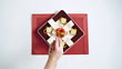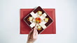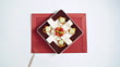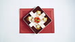 MS HA Red square plate with vegetables and tofu artfully arranged on red napkin - HD stock video