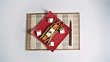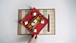 MS HA Red square plate with vegetables and tofu artfully arranged being served onto mat - HD stock video