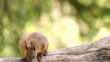 Red Squirrel (Sciurus vulgaris) eating perched on a trunk in forest on July 08, 2018 in Finland.