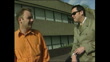 Tracking along parked car to Bob Mortimer and Vic Reeves as they stand outside the Television Centre. vs Mortimer and Reeves being stupid.