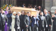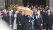 PARIS, FRANCE - OCTOBER 06: Release of the coffin after mass carried by Jean Pierre Pain, Jean Louis Borloo, Basile Boliet Bernard Tapie. The first religious ceremony in homage to Bernard Tapie took place on Wednesday morning in the Saint-Germain-des-Prés church, in Paris. on October 6, 2021 in Paris, France. Bernard Tapie died on October 3, 2021. (footage by Photo and Co / Getty Images)