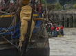 Replica of Gotheborg merchant ship sails up River Thames and through Tower Bridge; 'Gotheborg' towed back along Thames after being turned / people seen crowding decks of ship / figurehead of ship