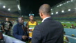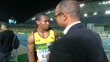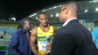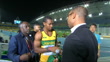 Yohan Blake (100m World Champion) interview with reporter in shot SOT