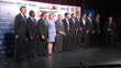 CLEAN: Republican presidential contenders arrive in New Hampshire for debate. Shows interior shots Republican candidates Jeb Bush, Ben Carson, Chris Christie, Carly Fiorina, Lindsey Graham, Bobby Jindal, John Kasich, George Pataki, Rick Perry and Rick Santorum & Scott Walker on stage at St Anselm's College. on August 03, 2015 in Manchester, New Hampshire.