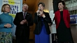 Republican U.S. Senate candidate Joni Ernst (C), flanked by Iowa Gov. Terry Branstad (L) and Iowa Lt. Gov. Kim Reynolds, speaks during a campaign stop at the Amtrak Osceola Train Depot November 2, 2014 in Osceola, Iowa. A Des Moines Register poll published a day earlier put Ernst seven points ahead of her opponent, Rep. Bruce Braley (D-IA), three days before the election. During a November 1, conference call, U.S. Senate Majority Leader Harry Reid (D-NV) told progressive activists 'If we win Iowa, we're going to be just fine. Iowa is critical.' (Footage by Chip Somodevilla/Getty Images)