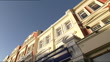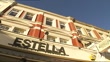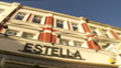 Residents protest against mobile phone mast in Wimbledon; Low angle view of flats above sign for 'Estella bar de tapas' restaurant PAN