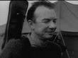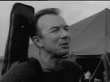 Rest stop for the marchers; folk singer Pete Seeger talks with a group of people near large tent on the side of the road.