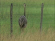 A rhea slips under a wire fence and walks away. (Core Number: NBRY544S)