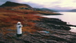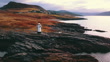 Drone footage over Rhue Lighthouse, with the deep rustic reds of bracken along this rugged costline