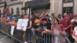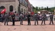 Riot police moved in on counter protesters in downtown Pikeville, Kentucky, on Saturday, April 29. Police separated white nationalist and anti-racism demonstrators by metal barricades, as seen in the video. The two groups chanted slogans against each other, according to http://www.kentucky.com/news/state/article147594424.html local reports . Banners against racism can be seen on one side, while Confederate flags and flags of neo-Nazi National Socialist Movement (NSM) can be seen on the other. (Footage By Daniel Shular/Storyful via Getty Images)