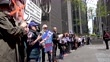 NEW YORK, NEW YORK - APRIL 25: (COMPILATION) Rise and Resist hold signs with quotes from Laura Ingraham, Rupert Murdoch, Tucker Carlson during 'Truth Tuesday' protest at News Corp. Building 1211 Avenue of the Americas on April 25, 2023 in New York City. Fox News cuts ties with Tucker Carlson after reaching a settlement in the Dominion Defamation Case. (Footage by Sandi Bachom/Getty Images)