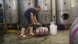 Rise of microbreweries; ENGLAND: London: Earl's Court:INTMan dressed as Betty Stoggs (Queen of Cornish ale) leading band of Cornish drummers from Cornish brewery Skinner'sPint of Bombadier real ale being poured into pint glassList of beers on boardMan at beer festival wearing 'Help Save Real Ale' t-shirt PAN DOWN to 'Buy Me a Pint' sloganRow of beer pumpsMan pouring pintMan holding up pintClose shot glass of beer being pouredMike Benner (Campaign for Real Ale) (CAMRA) interview SOTTottenham:High shot Andy Moffat (Redemption Brewery) lifting barrels in Redemption microbreweryMicrobrewery employee on ladder next to vatMoffat pouring beer from hose into barrelClose shot beer overflowing from barrelMoffat pouring pint from barrelMoffat lifting pint of beer (real ale)Andy Moffat (Redemption Brewery) interview SOTLondon: Earl's Court:EXTThwaites brewery dray horses and wagon with brewery workers wearing bowler hatsINTBeer drinkers and CAMRA members being served at barTottenham:Moffat drinking beerEarl's Court:Cornish drummers along in Skinner's parade