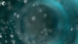 A macro shot of carbonated water effervescing in a bright blue glass. Delicate bubbles fizz and swirl whilst the water ripples gently.