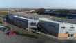 Rising drone shot over Scunthorpe United's Glanford Park ground (BBC News rushes - 160919 - ABSA627D)
