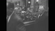 Title card: "Rites for Barkley in Washington" / The exterior of Foundry Methodist Church in Washington with a pan down to traffic and a large crowd / The interior bier and coffin / Numerous senators including Andrew Schoeppel, Henry Dworshak, William Purtell, Patrick McNamara, and Mennen Williams arrive and climb steps / widow of Woodrow Wilson, Edith Wilson, arrives / Jane Hadley Barkley, widow, arrives / Vice President Richard M. Nixon follows / Eisenhower exits his limousine with White House Chief of Staff Sherman Adams and walk past numerous photographers / elevated view of the altar / VS pallbearers carry the coffin out of the church / The last words of Barkley on a notice board, "I would rather be a servant in the house of the lord, than sit in the seat of the mighty" / crowd with umbrellas in front of church