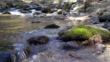 crystalline water descends from the thaw of the Sierra de Guadarrama by riverbed between pine forests in spring