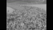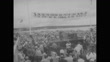Title: "Road through the Sea - Nova Scotia Opens Causeway to Cape Breton" superimposed over causeway / VS causeway / PAN new causeway / CU map of Canada showing Nova Scotia, New Brunswick and Newfoundland / CU map, pointer comes in to show location of new causeway between Nova Scotia and Cape Breton Island / WS bagpipers marching toward camera / CU little boy marching by followed by bagpipers / High shot bag pipers parade across causeway / WS ceremonies ready to commence, crowd around stage, banners across over platform / High shot crowd / CU C. D. Howe, Canadian Minister of Trade, Commerce and Minister of Defense Production, cuts ribbon to open causeway / VS High tilt up shot mass of people crossing causeway