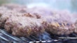 Roasting ground meat (Balkan cevapi, kebab) on a grill outdoors.