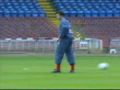 Fowler along on pitch during England FC training session (wearing Nationwide logo)