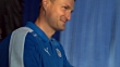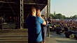 Robert Huth claps as he walks out on stage in front of a large crowd celebrating Leicester City's Premier League win in 2016.