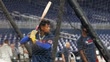 MIAMI, FLORIDA - AUGUST 25: Ronald Acuña Jr. #13 of the Atlanta Braves participates in batting practice ahead of the game between the Atlanta Braves and the Miami Marlins at loanDepot Park on August 25, 2025 in Miami, Florida. (Footage by Carmen Mandato/Getty Images)