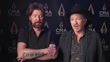 NASHVILLE, TENNESSEE - NOVEMBER 18: (INTERVIEW) (L-R) Ronnie Dunn and Kix Brooks of Brooks & Dunn speak about their hiatus and returning to music at The 58th Annual CMA Awards Rehearsals – Day 2 at Bridgestone Arena on November 18, 2024 in Nashville, Tennessee. (Footage by Adam Jason Finmann/Getty Images for CMA)