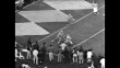 EXT Rose Bowl stadium as crowd heads inside for game between UCLA Bruins and the Michigan State Spartans / band display formations on field while the crowd cheers and chants / game begins / specific players mentioned are: Gary Beban, Dallas Grider, Mel Farr, Steve Juday, Gene Washington, Bob Apisa, Dwight Lee, Ed Cotton and Jimmy Raye / UCLA wins 14 to 12.