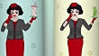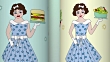 Two rotating tin cans decorated with vintage drawings and an apple on a cabinet shelve. One with three girls with overweight en one with slim girls. The overweight girls with hamburger, milks shake and ice cream. The slim girls with salad, mint tea and fruit. Suitable for looping. Drawn in Illustrator, build in After Effects.