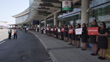 Row Of Air Canada Flight Attendants With Signs During A Demonstration At Toronto Pearson International Airport In Toronto, Ontario, Canada