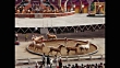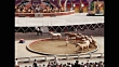 1954 MONTAGE Roy Rogers show, horses running in circle at Canadian National Exhibition, Toronto, Ontario, Canada
