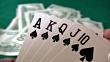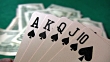 Royal flush in spades suit playing cards. Selective focus. HD 1080i.