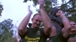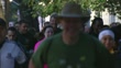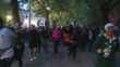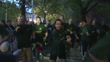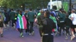 RUGBY UNION: Rugby World Cup 2015: New Zealand beat South Africa in semi-final; ENGLAND: London:EXT / DAWNGVs Hundreds of South African rugby supporters jogging through London streets Francois Pienaar (former World Cup winning South African captain) running with fans Francois Pienaar applauding as fans sing SOT and pats Nelson Mandela statue for good luck