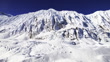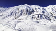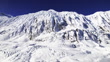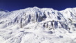 Dramatic textures of frozen cliffs shimmer beneath the Himalayan sunlight.