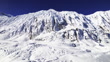 A rugged snow-covered ridge dominates the frame under a crystal-clear sky. - 4K stock video