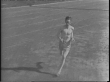 Runner Gunder Hagg smiles and waves to spectators at the airport / Hagg running down racetrack / Hagg running in slow motion / Hagg smiles at the camera.