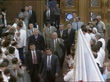 Olympic Games: Russian team:; RUSSIAN FEDERATION: Moscow:EXTMS War memorial TILT DOWN Russian Olympic team gathered for photocallMS Members of Olympic team in white blazers, blue trousers and ties pastMS Women competitors in white suits with red and blue pattern along PULL OUTINTTMS PM Viktor Chernomyrdin and others into room to send off team PULL OUT as team members applaudTCMS Chernomyrdin shakes with church representativesMS Members of olympic team across PAN L-RTILT UP to statueCMS Vitaly Smirnov (Pres, Russian Olympic Cttee) stand with team member for photocallCMS Vitaly Smirnov (Pres, Russian Olympic Cttee) intvw SOT (subtitled)- Hope to win more gold medals than in Barcelona