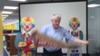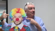 MADRID, SPAIN - FEBRUARY 11: Ryanair CEO, Michael O'Leary, points to a cardboard totem of Spain's Minister of Consumer Affairs, Pablo Bustinduy, worn as a clown during a statement on February 11, 2025, in Madrid, Spain. O'Leary addressed the current situation of the company on hand luggage and related policies after the latest controversies with the Government. (Footage by Europa Press via Getty Images)