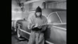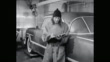 1950's - Man in coat writing on clipboard while standing near car in cold storage - 4K stock video