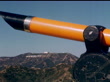 1940's View of Hollywoodland sign, looking past tourist viewing telescope - stock video