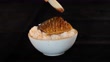 Grilled Saba on Japanese Rice topped with teriyaki sauce.
